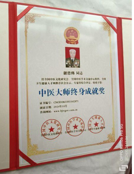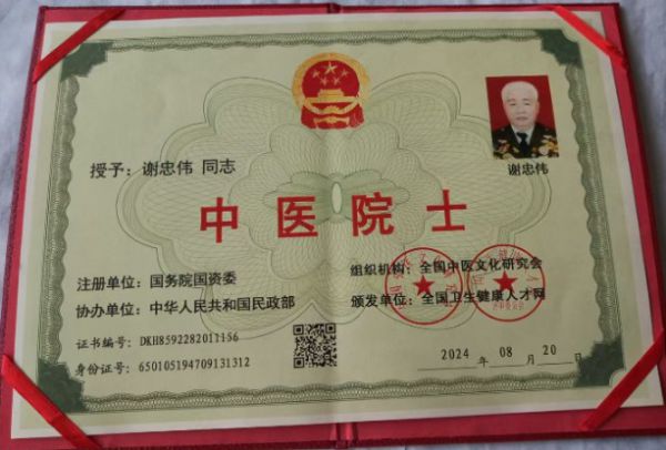 谢忠伟,四川省南部县大河镇,1947年9月出生,1963年入伍,中共党员,世界名医,世界名人,美国密西西比学院荣誉博士,香港国际医学科学研究院教授,终身医学博士,世界中医药研究院终身教授,香港国际皇家社会科学院院士,香港皇室文化研究会授予终身贵族爵位。