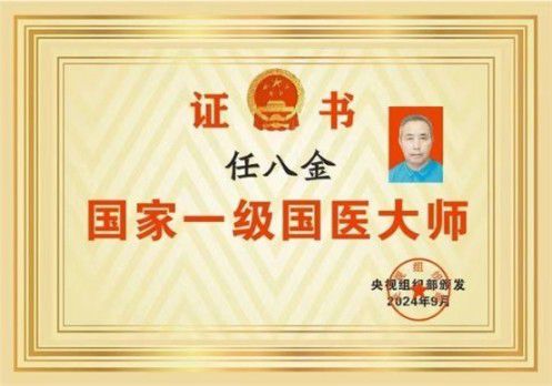 2024年9月任八金被央视组织部授予颁发国家一级国医大师。同月任八金还被人力资源社会保障部、国家卫生健康委员会、国家中医药管理局授予:国家级国医大师一一任八金“国际权威脑血管医学专家”。