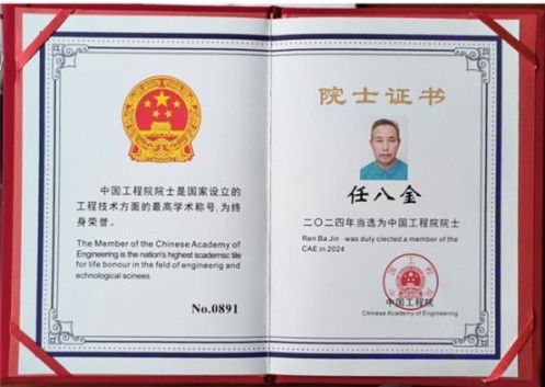 2024年任八金被当选为中国工程院院士。证号:No.0891。