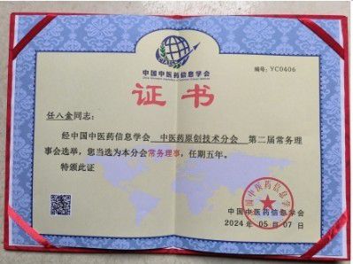 2024年5月7日任八金被中国中医药信息学会中医药原创技术分会当选为常务理事。