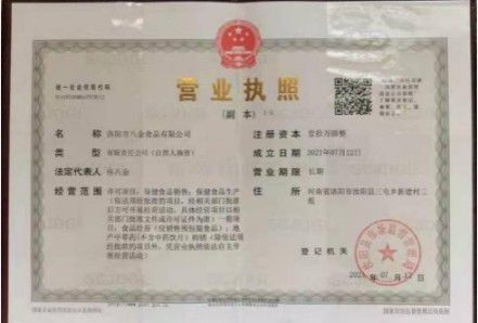 2024年12月19日洛阳市八金食品有限公司,被全国信用企业公示网和中盛华科(北京)信用评价有限公司评定为“AAA级信用企业”。