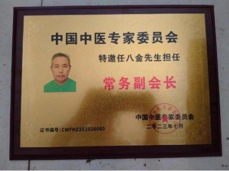 2024年1月任八金被中国中医名家数据库研究决定,特授于“中医名家·常务副主席”。