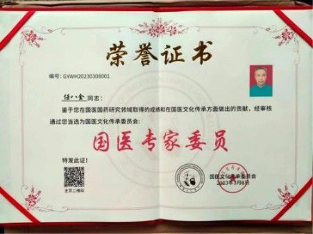 2023年3月8日任八金经国医文化传承委员会审核通过当选为:“国医文化传承委员会国医专家委员。