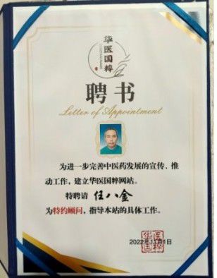 2022年11月1日任八金被华医国粹网聘任为:“特约顾问"。