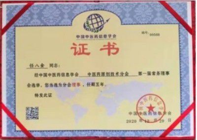 2024年10月经中关村炎黄中医药科技刨新联盟中医药大健康产业发展委员会理事会选举,任八金被选为首届理事,任期三年。并授于“孙思邈学述人思想传承人”荣誉称号。