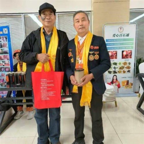 他是郭仙灵的丈夫,他得的是血糖高,前列线炎、心脏早博,每分钟34下,医院建议换心脏,对他使用中医调理三个多月,一切病都好了,接着又吃了《血管通粉剂》一年多,今年80岁了,满头白发,现在一切病都好了,头发也变黑了。