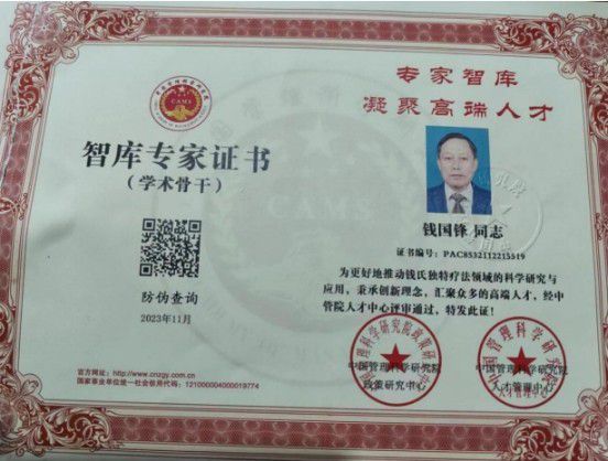 自幼喜爱药草,再有少年时的宝贵经历,使得钱国锋对中医传统经验疗法、中草药特效疗法有着独特的认知,更有深入的研究,他结合多年临床实践并通过验证,总结出一套针对各类疑难杂症有着特殊明显疗效的中医独特疗方。钱医师擅长点穴疗法、辩证疗法,对头痛症18类方疗法,对痹症10类、胃脘疼痛10类、腰痛10类、椎间盘突出等疑难杂症有着丰富的临床治疗经验。